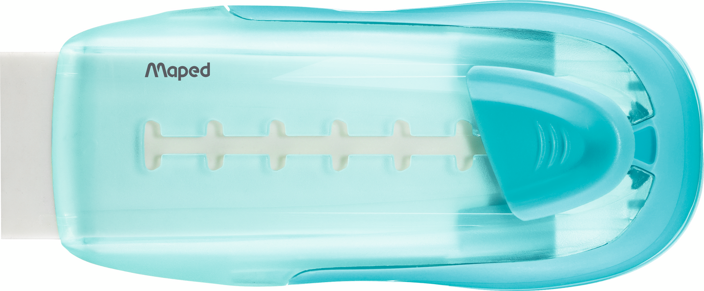 Pastellinvärisessä Maped Gom Stick -pyyhekumissa on kätevä liukumekanismi jonka ansiosta pyyhekumi pysyy siistinä käyttöjen välillä. Saatavilla kolme hienoa väriä. Verkosta tilattaessa ei valitettavasti voi valita väriä.