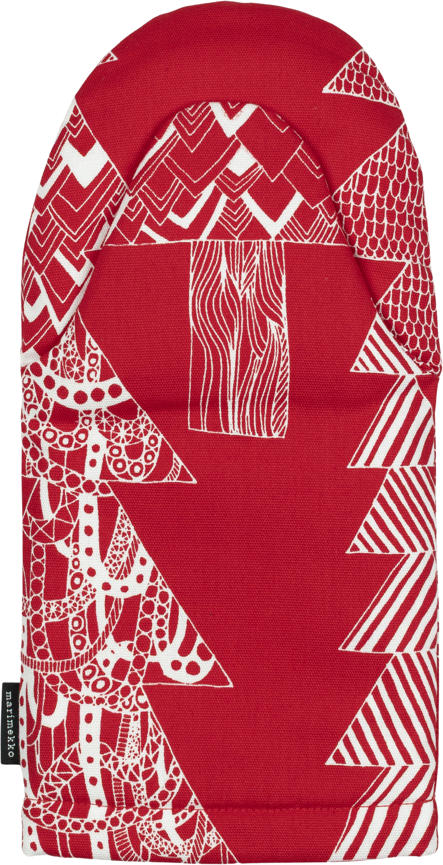 Puuvillakankaasta valmistetussa uunikintaassa on Maija Louekarin suunnittelema Kuusikossa-kuosi. Uunikintaassa on toppaus ja lenkki ripustamista varten.