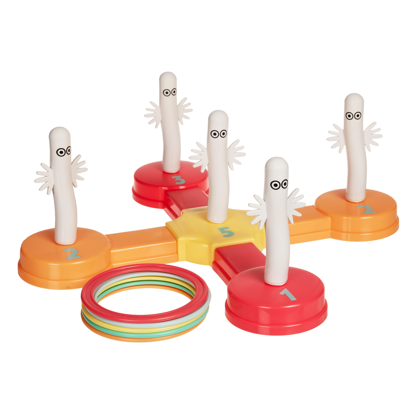 Tämä klassinen heittopeli helpoilla säännöillä on hauskaa koko perheelle! Pelaa ulkona tai sisällä, tähtää varovasti ja heitä renkaat niin, että ne laskeutuvat hattivattien ympärille pisteiden saamiseksi. Eniten pisteitä kerännyt voittaa! Sisältö: 5 rengasta ja 10 osasta koottu heittopeli. Pienikokoinen peli on helppo ottaa mukaan vaikka rannalle tai kesäretkelle. 3+