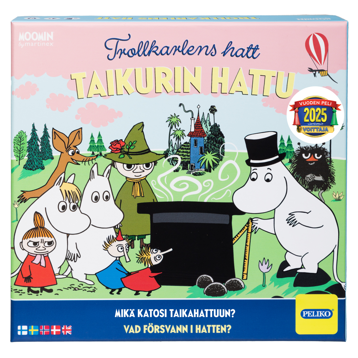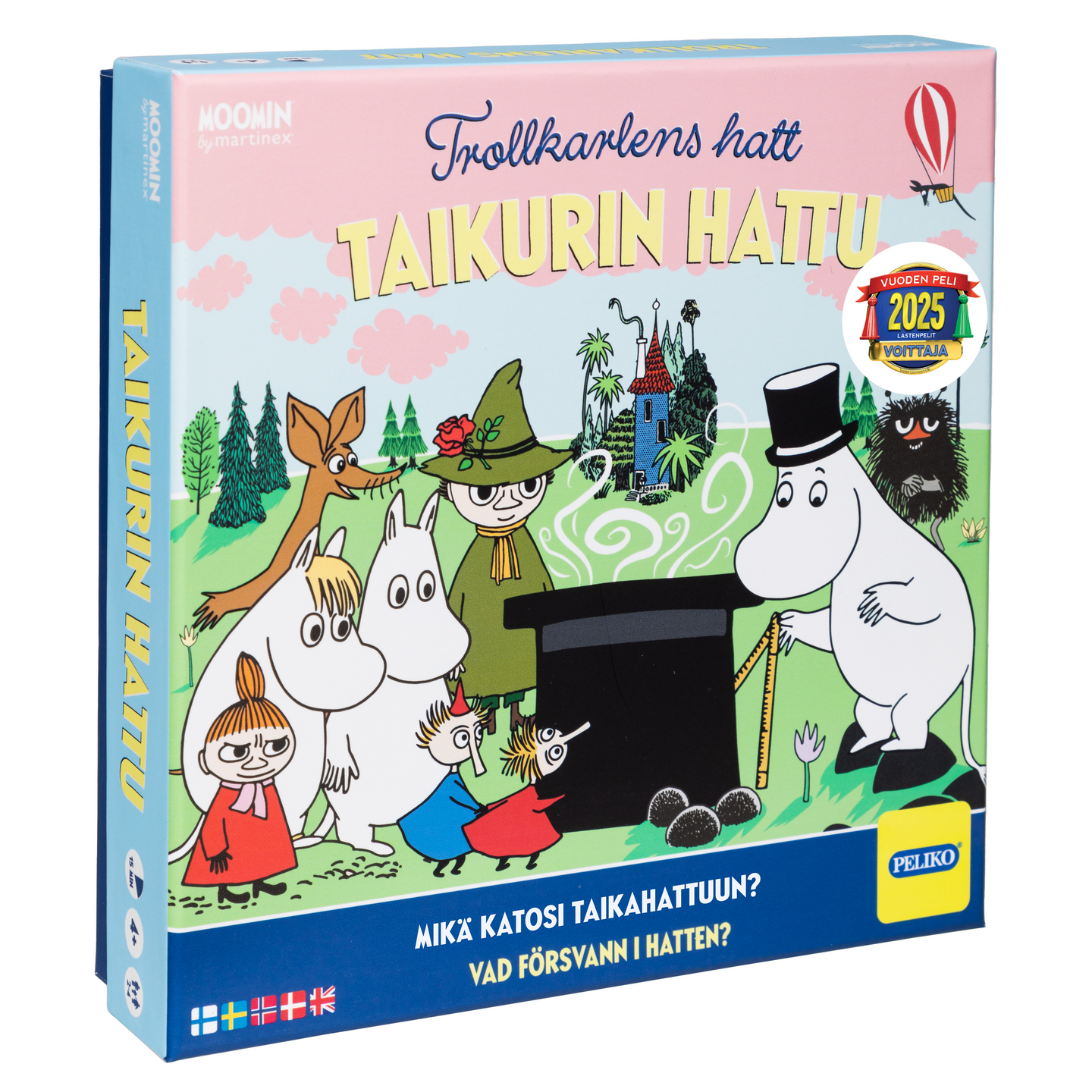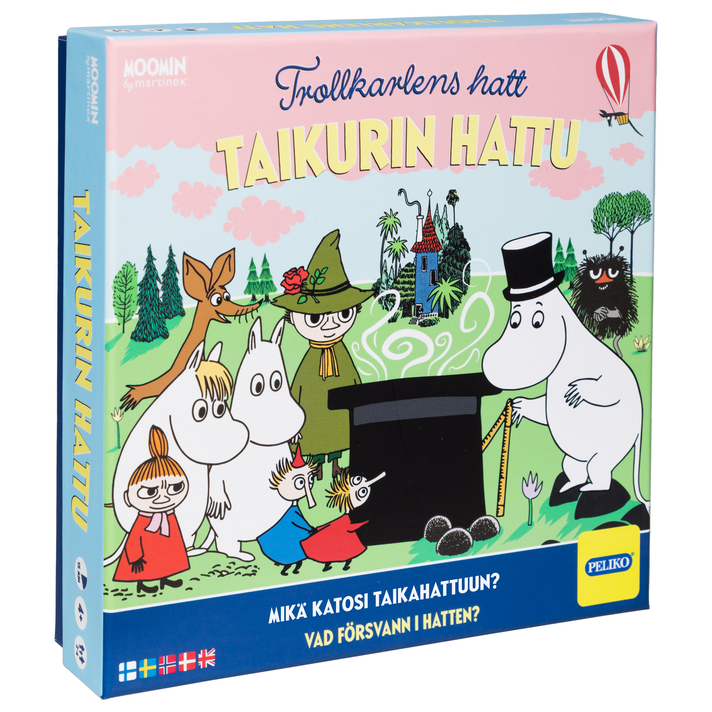 Hauska Muumi-muistipeli magneettisella taikurin hatulla! Kuvalaatat asetetaan pelilaatikon sisään, ja pelaajilla on hetki aikaa painaa ne mieleensä. Sitten laatikko suljetaan ja magneettihattu asetetaan laatikon päälle. Yksi pelaajista liikuttaa hattua laatikon päällä, kunnes se poimii laatan. Laatikko avataan uudelleen, ja pelaajat yrittävät muistella, mikä laatta puuttuu. Pelaaja, joka arvaa oikein, voittaa laatan, ja ensimmäisenä neljä laattaa kerännyt pelaaja voittaa pelin! 2-4 pelaajaa, 15 min, 4+