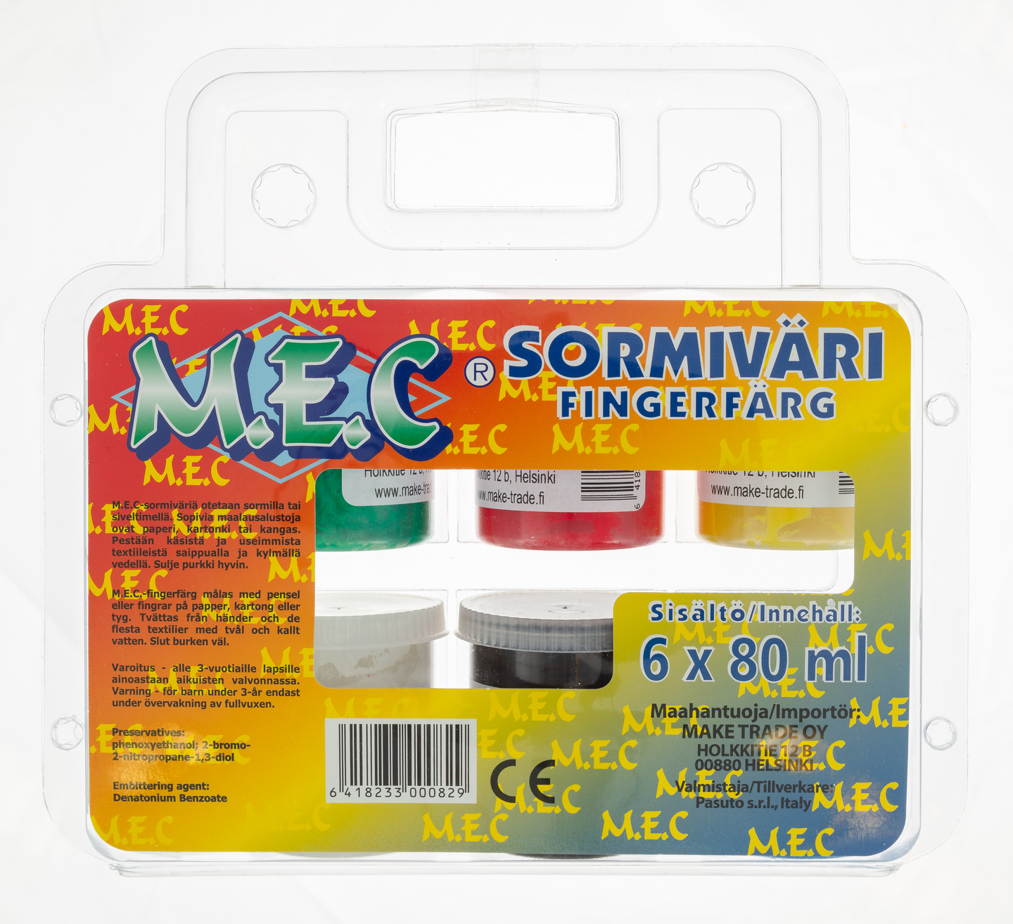 Kirkkaan väriset ja pahan makuiset sormivärit! Käyttöohje1. Avaa purkit ja asettele ne inspiroivaan järjestykseen. 2. Dippaa sormesi maaliin ja päätä kohde. 3. Luo! Suosittelemme maalauskohteeksi esimerkiksi paperia, kartonkia tai askartelukangasta, sillä kaikki eivät osaa arvostaa sormiväreillä maalattuja huonekaluja ja seiniä. Rajoittunutta.Kuusi kirkasta väriä, pestävissä pois iholta ja useimmista tekstiileistä saippuavedellä, gluteeniton.Lajittele kartonkipakkaus pahvinkeräykseen ja tyhjät, puhtaat purkit muovinkeräykseen.