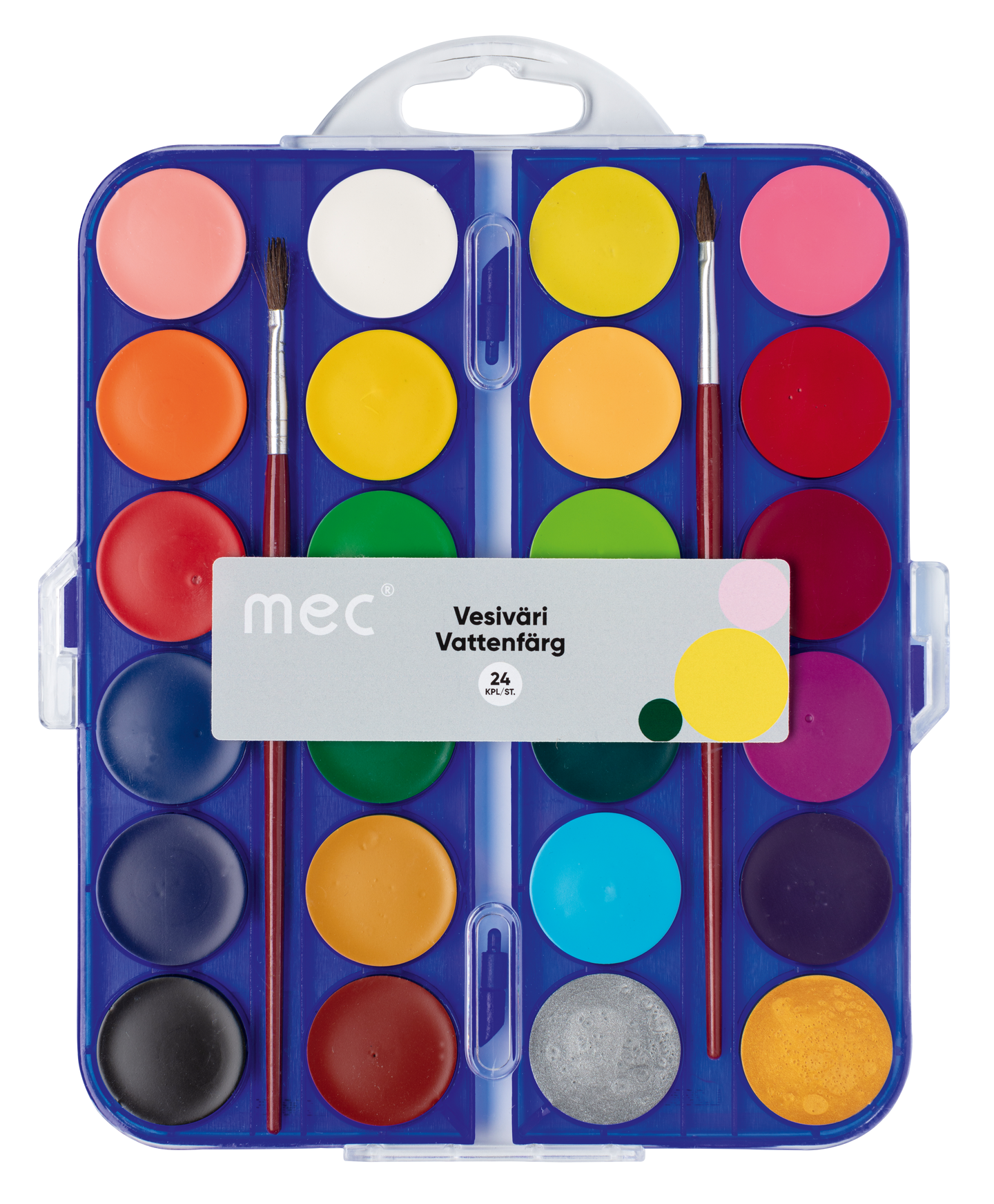 Poista vesiväripaletista värinapit ja lajittele ne sekajätteeseen. Lajittele puhdas vesiväripaletti muovinkeräykseen. Lajittele siveltimet sekajätteeseen.