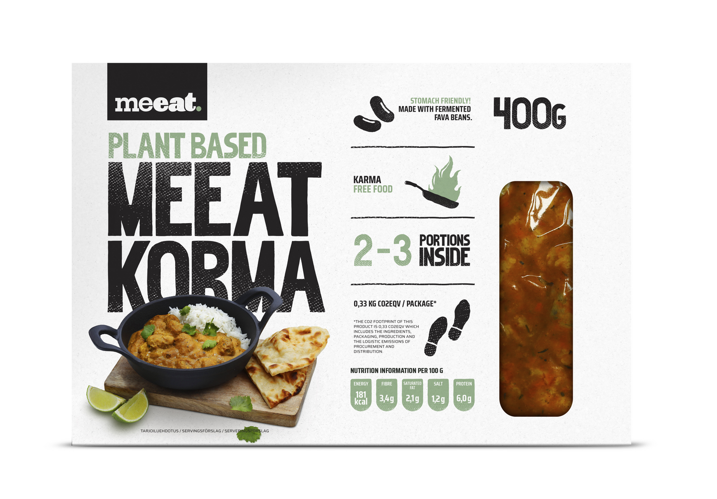 Meeat Korma on valmistettu vatsaystävällisestä fermentoidusta härkäpavusta. Kastike on lämmitystä vaille valmis ja sitä voi tuunata helposti oman maun mukaan vaikka kookosmaidolla tai maustekastikkeilla. Lisää haluamasi mausteet kastikkeeseen lämmityksen yhteydessä. Tarjoile riisin, naan-leivän ja tuoreen korianterin kanssa.
