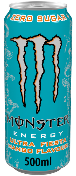 Sokeriton energiajuoma Monster Ultra Fiesta sekoittaa mehukkaan mangon maun tuttuun Ultraan täydellä kuormalla energiaa. Monster Ultra Fiesta sopii hetkeen kuin hetkeen – se juhlii aamuiksi muuttuvia öitä ja ystäviä, joita nyt kutsumme perheeksi!