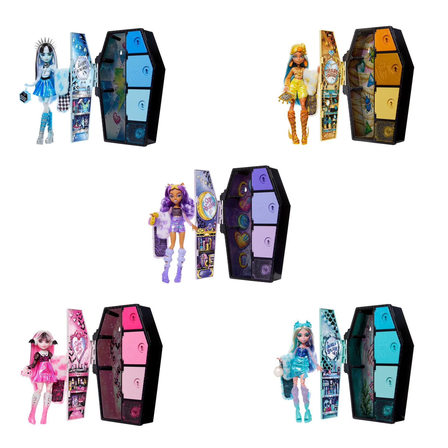 Monster Highn oppilaiden vaatekaapin lukittavista lokeroista paljastuu karmean upeita vaatteita ja asusteita kymmeniin eri tyyleihin. Sis. nukke, vaatekaappi, vaatteet ja asusteet, yht. yli 15 osaa. Useita erilaisia. 6+