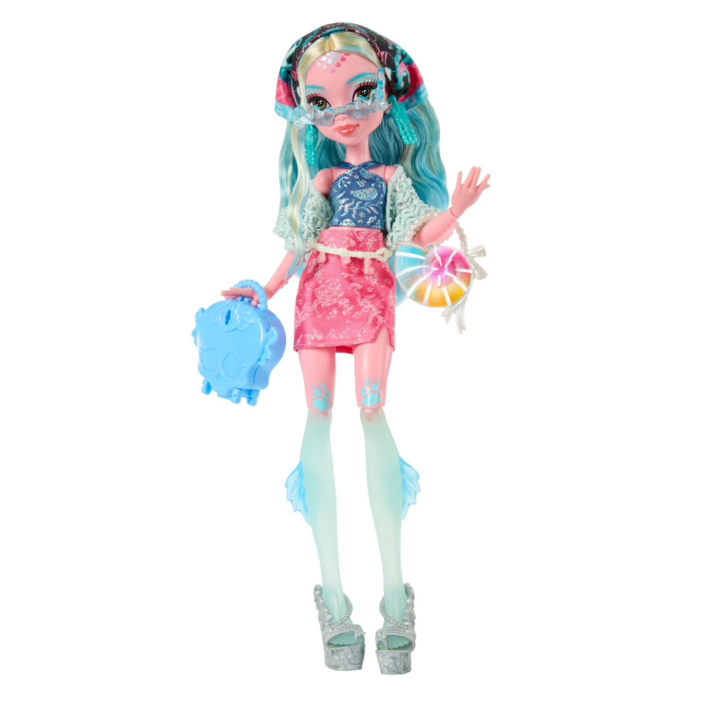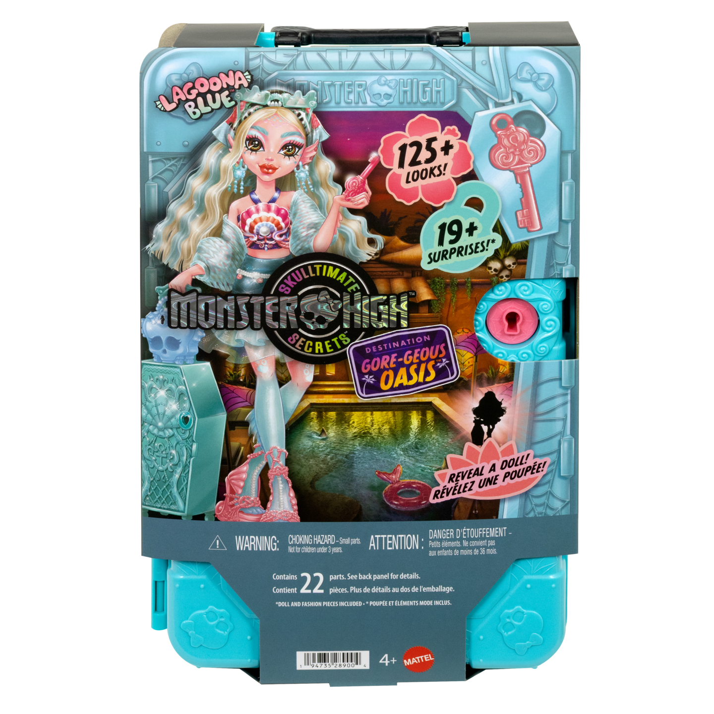 Monster High Lagoonan matkalaukku on täynnä yllätyksiä! Avaa lukollinen matkalaukku ja löydä Lagoona-nukke, persoonallisia vaatteita ja asusteita sekä nukelle oma matkalaukku! Pakkaus sisältää nuken, matkalaukun, vaatteita, asusteita ja tarvikkeita, yhteensä yli 19 osaa ja 125 erilaista tyyliä! 4+