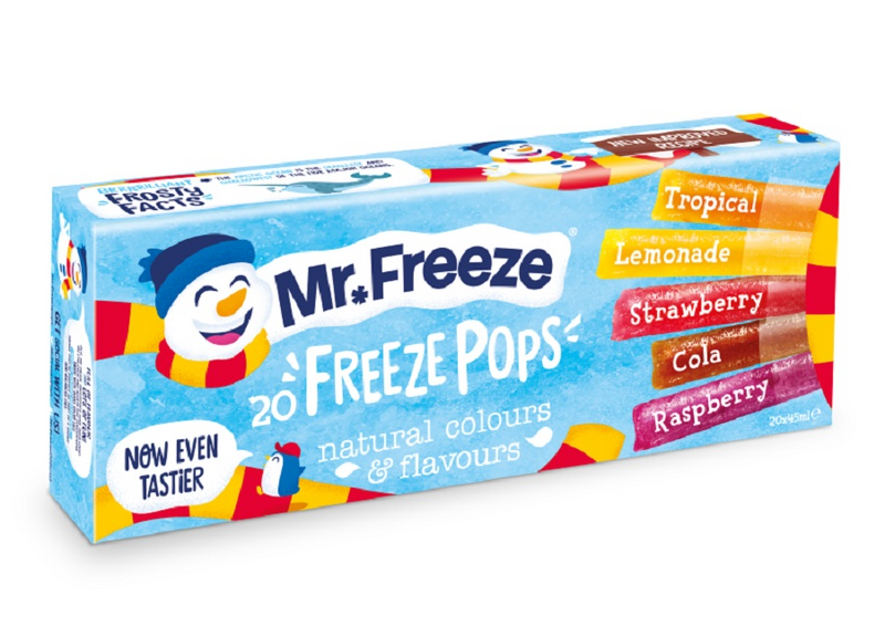 Mr. Freeze on nostalgian havinaa jo vuodesta 1966. Mr. Freeze on ylivoimaisesti eniten kysytty tuote, jota pyydetään takaisin valikoimaamme. Iloksemme voimme todeta, että pakkasherra on palannut entistäkin vahvempana takaisin. Pakkaus sisältää seuraavat maut : Cola Mansikka Vadelma Sitruuna Tropical