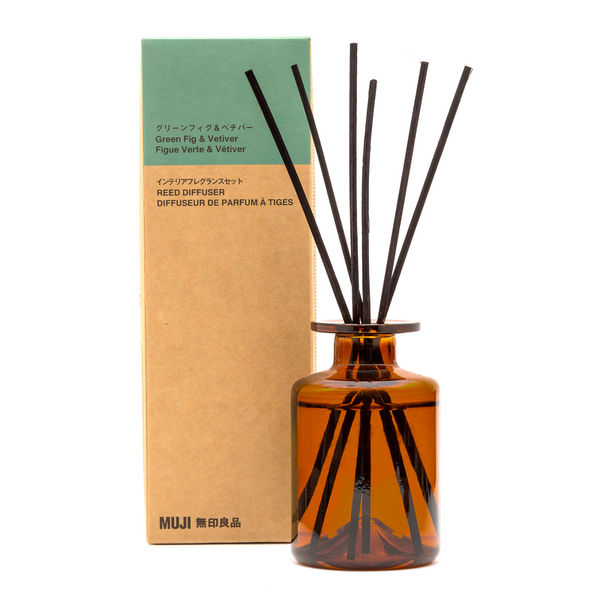 Ruokodiffuuserimme täyttää kotisi vihreän viikunan ja vetiveriaheinän tuoksulla. Kierrä ruokotikkuja kahden viikon välein kyllästääksesi nesteen uudelleen ja tehostaaksesi tuoksua. Aseta diffuuseri aina suojalevylle ja pois seinistä värjäytymisen välttämiseksi. Pitkäikäisyyden vuoksi vältä sijoittamista pattereiden tai tuulettimien lähelle, koska korkeammat lämpötilat nopeuttavat diffuusiota.