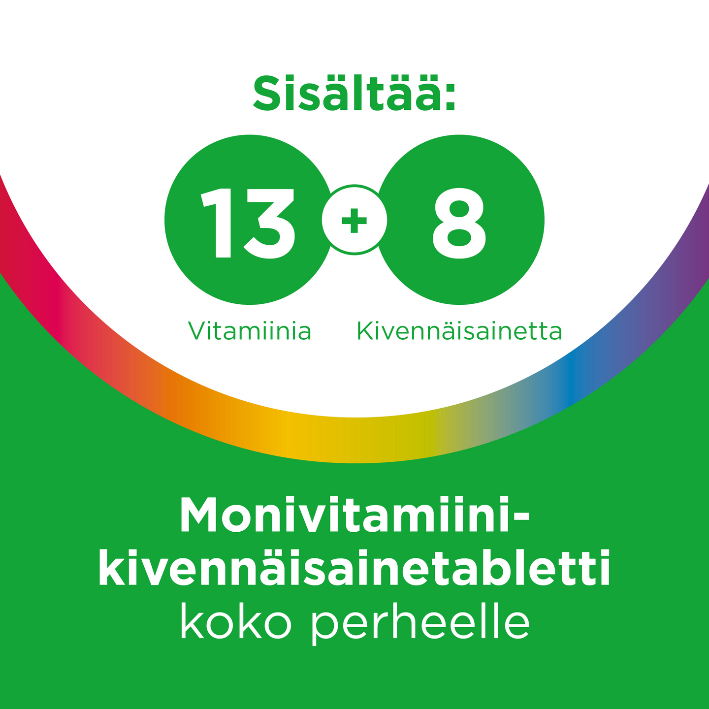 Multi-tabs Family on monivitamiini- ja kivennäisainelisä aikuisille ja lapsille 7-vuotiaasta lähtien. Multi-tabs Family sisältää esimerkiksi seuraavia aineosia: • Magnesium; edistää luuston ja lihasten normaalia toimintaa. • B1-, B6- ja B12-vitamiini, biotiini ja jodi; edistävät normaalia energia-aineenvaihduntaa. • C- ja D-vitamiini; edistävät immuunijärjestelmän normaalia toimintaa. • Pantoteenihappo; edistää normaalia psyykkistä toimintakykyä. Suositeltu annos: 1 tabletti vuorokaudessa.