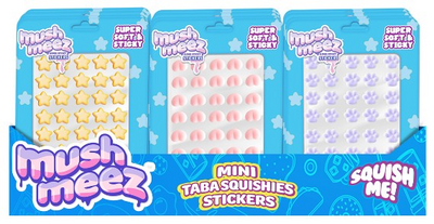 Superpehmeät, puristeltavat ja tahmaisen tarttuvat Mush Meezit ovat täällä. Korkealaatuisesta silikonista tehdyt Mush Meezit tarttuvat mihin vaan, myös toisiinsa ja niitä saa laitettua kerroksittain. Säilytä niitä suljettavissa pusseissaan. Näitä lapset rakastavat! Mush Meez Minit ovat loistavia koristeluun ja tarttuvat mihin vaan, esim. kännykkäkoristeeksi tai vaikka juomapulloon!. Saatavilla erilaisia.