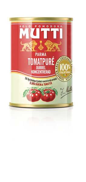 Täyteläinen ja intensiivinen tuplakonsentroitu tomaattipyree tuo ruokiin väriä, makua ja koostumusta. Perinteinen tomaattipyree kestää pitkää kypsennystä ja sopii hyvin bolognesekastikkeeseen ja patoruokiin. Mutta se pääsee oikeuksiinsa myös nopeammissa, kekseliäissä resepteissä, kuten suolaisten piirakoiden täytteissä, lisukekastikkeissa ja pastaruoissa. Yhden tomaattipyreekilon valmistamiseen tarvitaan peräti 5,5 kiloa tuoreita tomaatteja, ja kuten kaikki Muttin tuotteet, myös tupakonsentroitu tomaatti on valmistettu vain parhaimpia tomaatteja käyttäen.