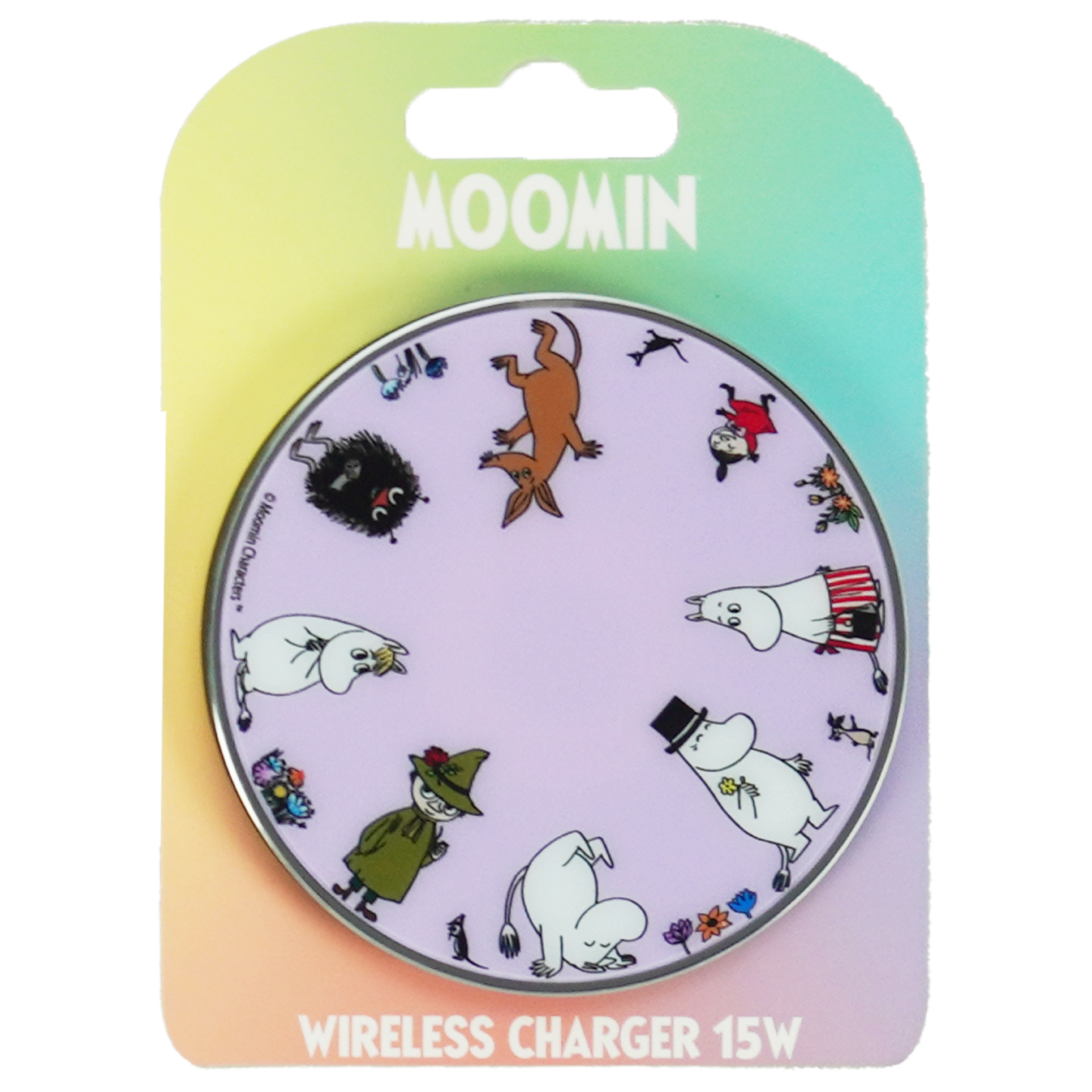 Ihastuttavat Muumilaakson hahmot langattomalla latausalustalla. Nopea langaton lataus 15 W teholla. Palava valo ilmoittaa toiminnoista. Vihreä valmiudesta ladata ja sininen latauksesta. Koko: Ø 102x5mm. Vuoden takuu.