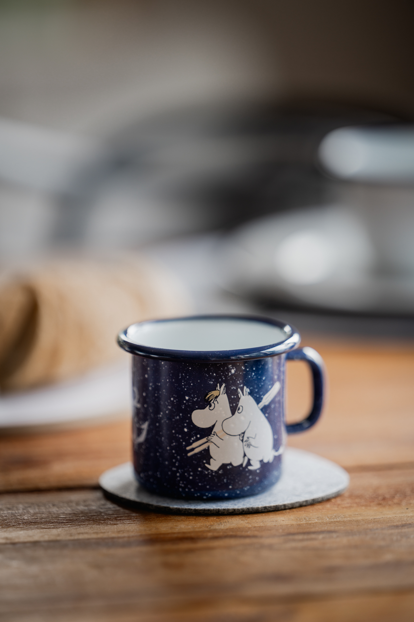 Ahoy, tuulta purjeisiin! ‘Muumiperhe ja meri’ sarjakuvateoksen innoittama Muumi by Muurla Sailors-sarjan emalituotteet vievät sinut seikkailuun merellä. Klassisen sinivalkoisia emalituotteita koristaa Toven ihastuttavat meriaiheiset kuvitukset Muumeista merenkulku matkalla. Emalimukista nautit niin lämpimät kuin kylmätkin juomat. Muurlan emalituotteiden sydän on hiiliterästä, jonka päällä on kaksinkertainen emalointi. Muki on kestävä ja se soveltuu perinteisten kattausten lisäksi myös retkelle, mökille tai veneelle.