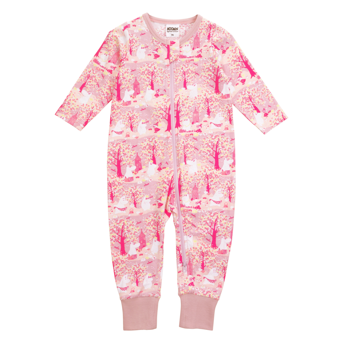 Pehmeästä kankaasta valmistettu vauvojen muumiaiheinen pyjama. Pyjamassa on pitkät hihat ja pukemista helpottava pitkä vetoketju. Pyjaman valmistukseen on käytetty sertifioitua luomupuuvillaa. GOTS (Global Organic Textile Standard) on kansainvälinen merkki luomupuuvillalle. Vähintään 70 prosenttia kuiduista on kasvatettava luonnonmukaisesti. Standardi määrittelee korkeat ympäristökriteerit luomutekstiilien koko toimitusketjussa ja edellyttää myös sosiaalisten kriteerien noudattamista. Lue lisää GOTS:stä täältä: global-standard.org.