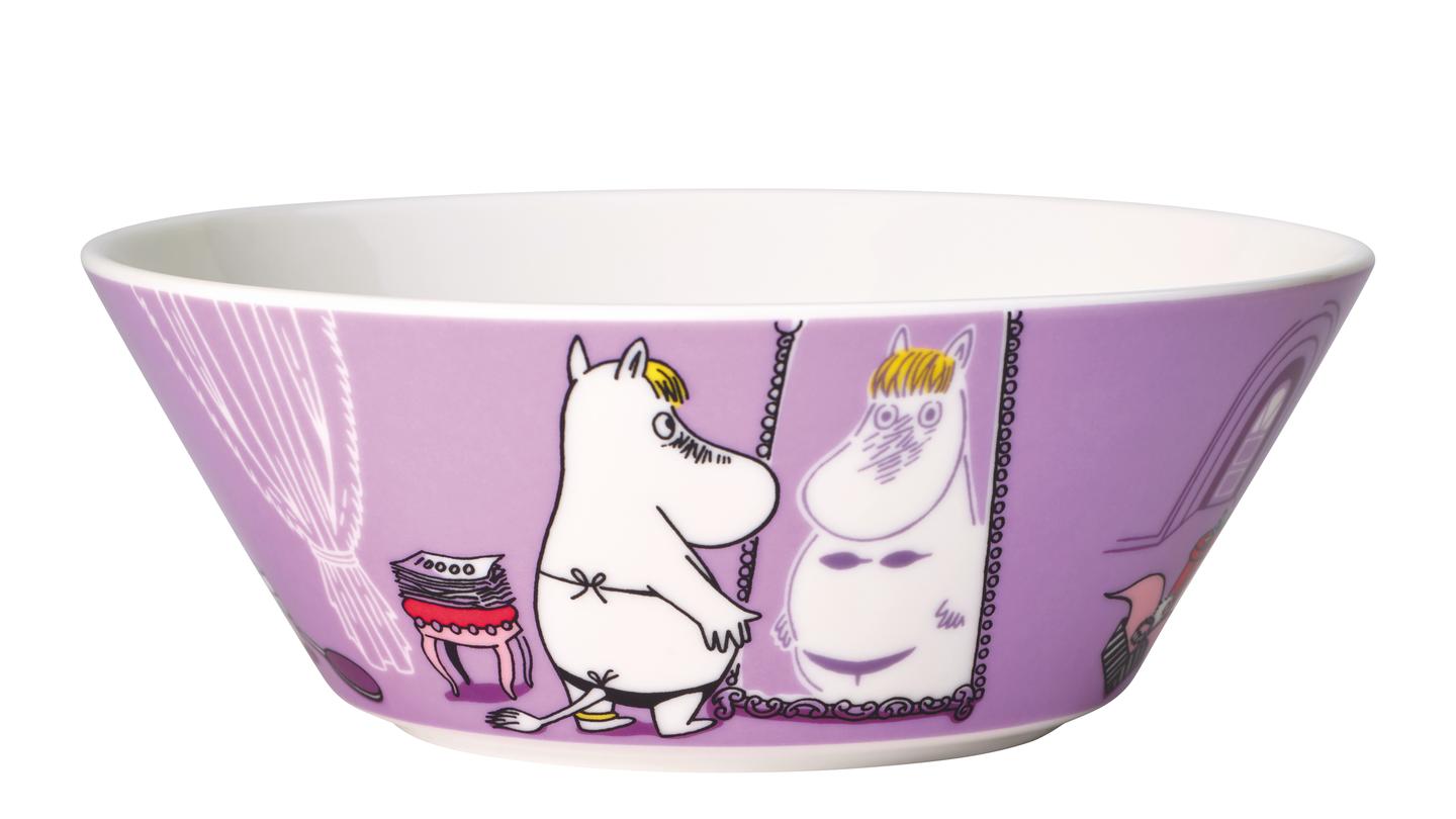 Niiskuneiti hurmaa ja rakastaa tulla hurmatuksi. Hän on paitsi naisellinen ja turhamainen, myös reipas ja neuvokas. Hän sovittaa ylleen bikinejä, mutta peilikuva ei imartele. Niiskuneiti näyttää tunteensa muuttamalla väriään. Moomin by Arabia, kulho 15cm, Niiskuneiti