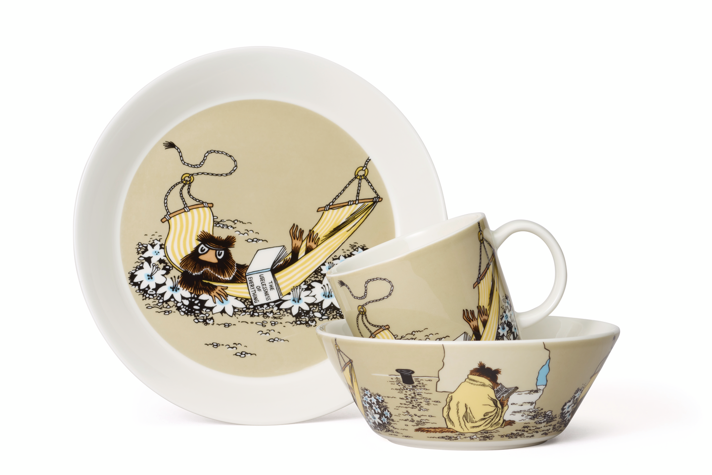 Piisamirotta on rauhaa arvostava filosofi. Parhaiten hän viihtyy muumiperheen riippumatossa lempikirjansa kera. Moomin Arabia, kulho 15 cm, Piisamirotta