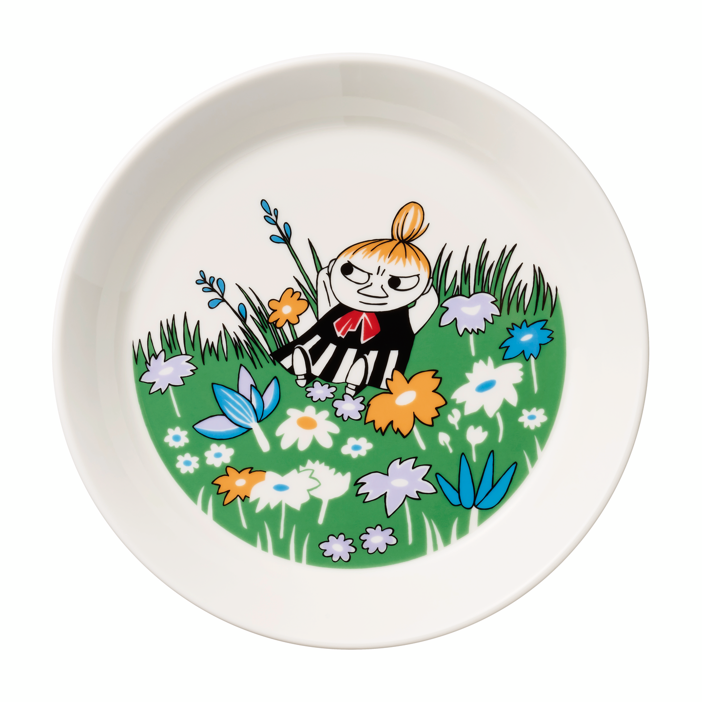 Pikku Myy on luonteeltaan rohkea ja peloton. Hän ihailee taivaalla loistavaa uutta, isoa tähteä – pyrstötähteä, joka osuu pian Muumilaaksoon. Pikku Myy on kuitenkin tapansa mukaan huoleton ja heittäytyy niitylle katsomaan lähestyvää komeettaa. Hän taitaa jopa rakastaa pieniä katastrofeja. Moomin by Arabia, lautanen 19cm, Pikku Myy Niityllä.