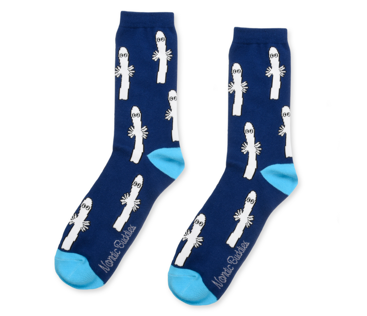 Ilahduta päivääsi hauskoilla Hattivatit sukilla! Hattivatit miesten sukat, koossa 40-45. Laivastonsinisessä sukassa kärkiosa ja sukan varsi vaaleansiniset. Sukat ovat 75% puuvillaa, 23% polyesteria ja 2% elastaania.
