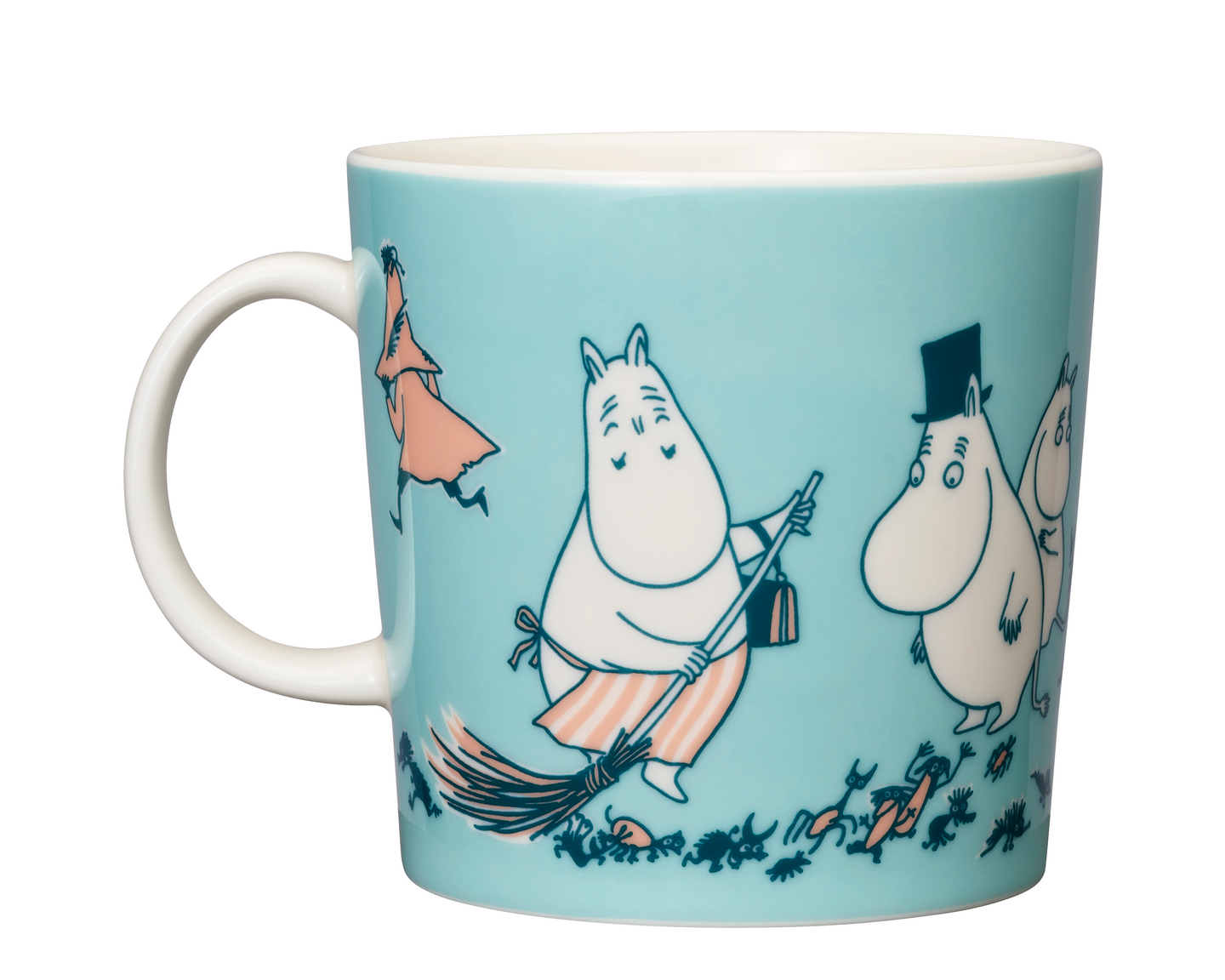 H-mukissa mereltä poimitusta laatikosta karkaa parvi sopimattomia sanoja. Muumit veikkaavat niiden kuuluvan kiroilun lopettaneelle merimiehelle. Lopulta Muumimamma saa sanat kuriin. ABC-kokoelmaan kuuluvan suuremman mukin kääntöpuolen kuvitus on saanut inspiraationsa “Muumiperhe”-sarjakuvasta. Moomin by Arabia, muki 0,4l, ABC H
