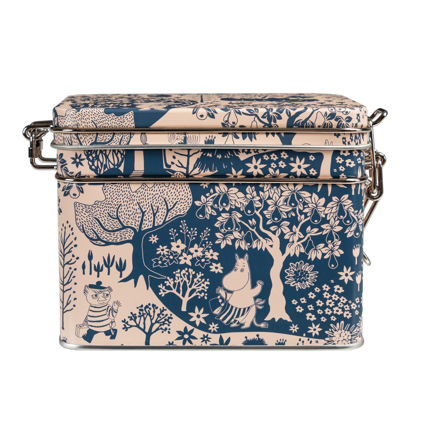 Peltinen Premium-teepurkki kauniilla ja klassisella Muumikuosilla. Purkissa on hermeettinen eli ilmatiivis kansi ja solkilukko, joka pitää teen tuoreena pitkään. Käsinpesu ja huolellinen kuivaus.