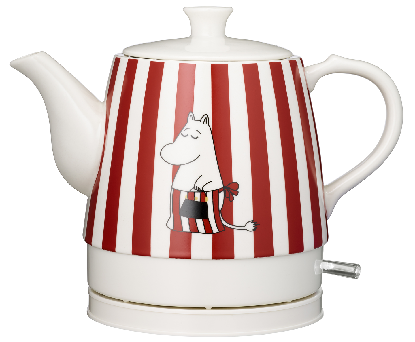 Muumi Romance keraaminen vedenkeitin. Väri punainen/valkoinen. Teho 1750w, tilavuus 0,8l. 360° pyörivä. On/off -kytkin sinisellä merkkivalolla. Automaattinen virrankatkaisu kun vesi kiehuu. Ylikuumenemissuoja. Takuu 2 vuotta.