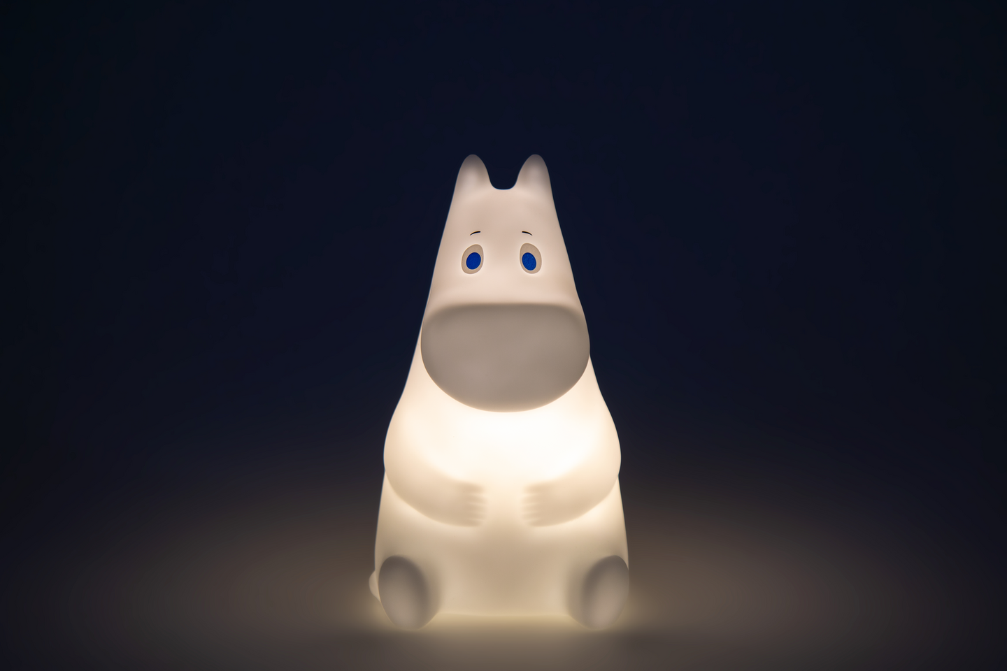 Muumi-valo on helppo kytkeä päälle pohjassa olevasta napista ja valkoinen LED-valo hohtaa 15 minuutin ajan, kunnes sammuu itsestään. Valaisimen ollessa ON-asennossa, napauta lamppua sytyttääksesi valo ja napauta uudestaan sammuttaaksesi valo.