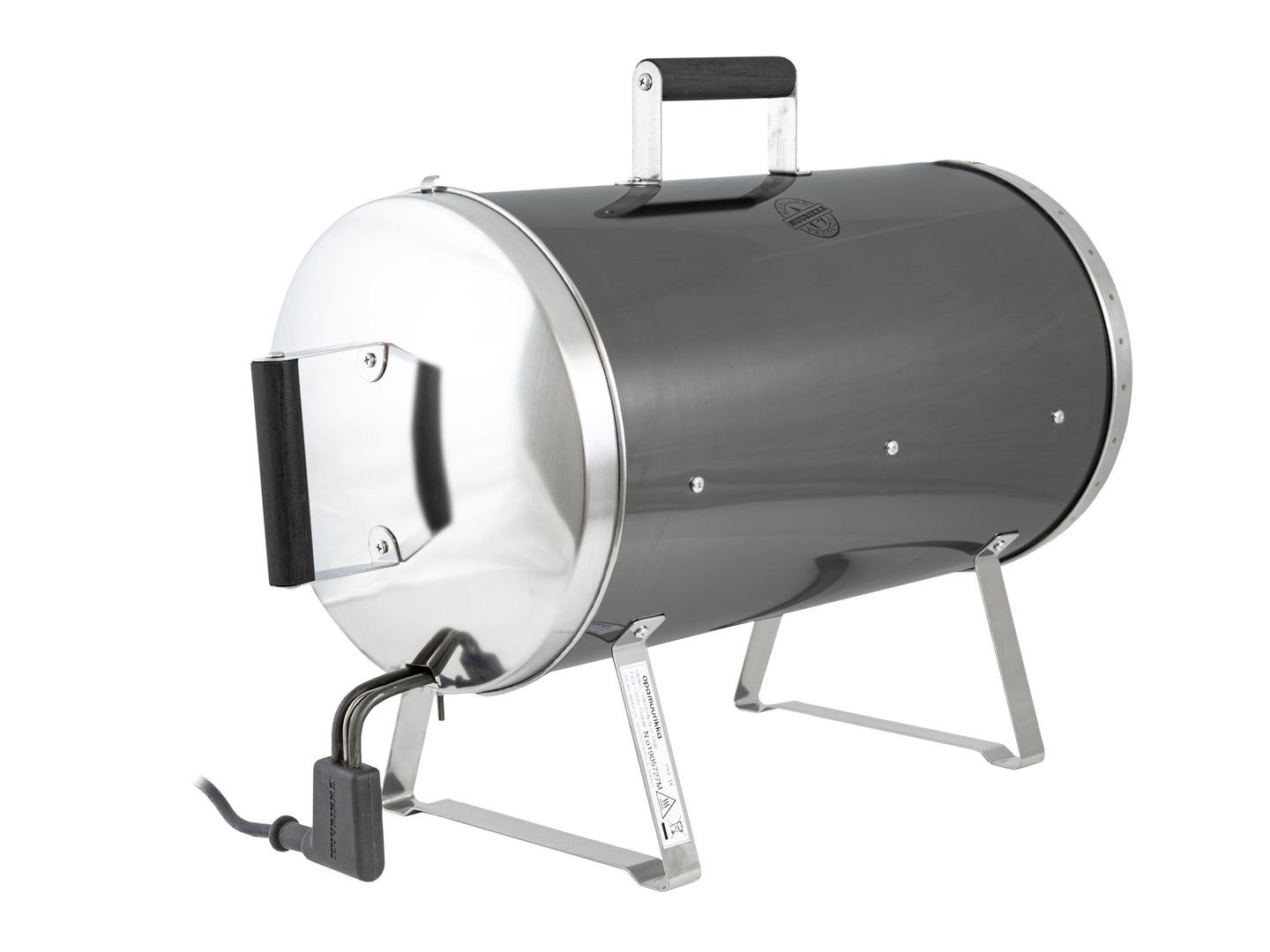 Kestävä teräsrunko on elektrolyyttisesti käsitelty, mikä tekee savustimelle kauniin, tumman pinnan.