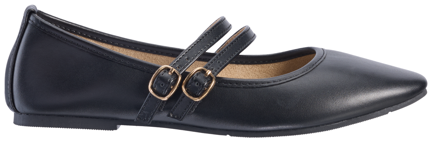 Mywear Marilyn naisten Mary Jane tyyliset ballerinat. Päällä kaksi solkihihnaa, joissa kiristysmahdollisuus. Ballerinat ovat nahkajäljitelmää ja ulkopohja tpr-kumia.