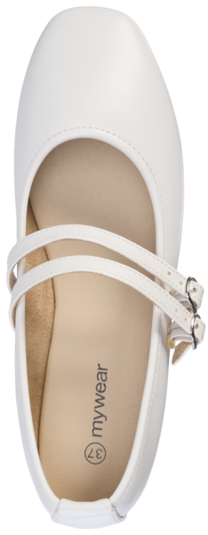 Mywear Marilyn naisten Mary Jane tyyliset ballerinat. Päällä kaksi solkihihnaa, joissa kiristysmahdollisuus. Ballerinat ovat nahkajäljitelmää ja ulkopohja tpr-kumia.
