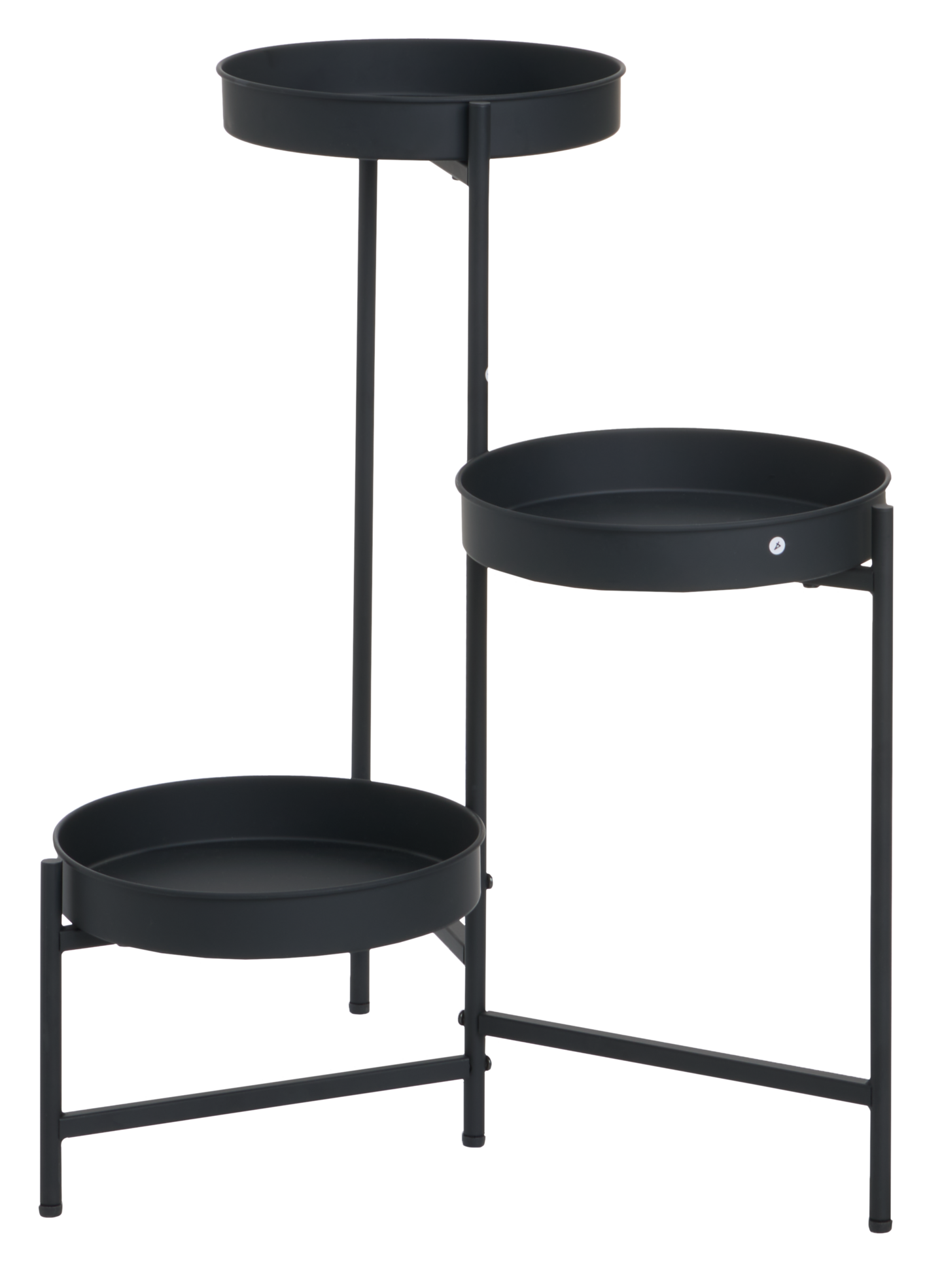 Moderni 3-tasoinen metallinen kukkateline.Kukkatasojen halkaisija 25 cm.13 mm metalliputki rungossa.