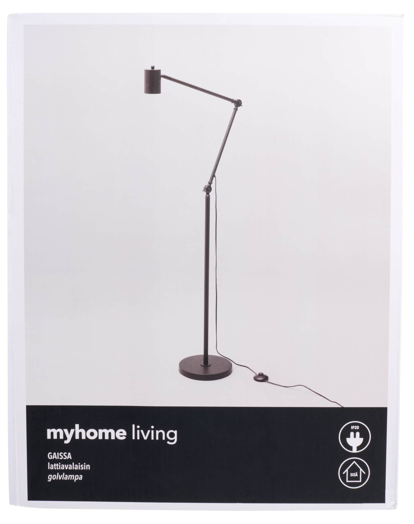 Klassisen mallinen ja elegantti lattiavalaisin on mustaa metallia. Valaisin luo pehmeää ja miellyttävää valoa kotiin. Soveltuu myös lukuvaloksi. Valaisimessa on kolme niveltä, joista sitä voi taivutella haluamaansa asentoon.