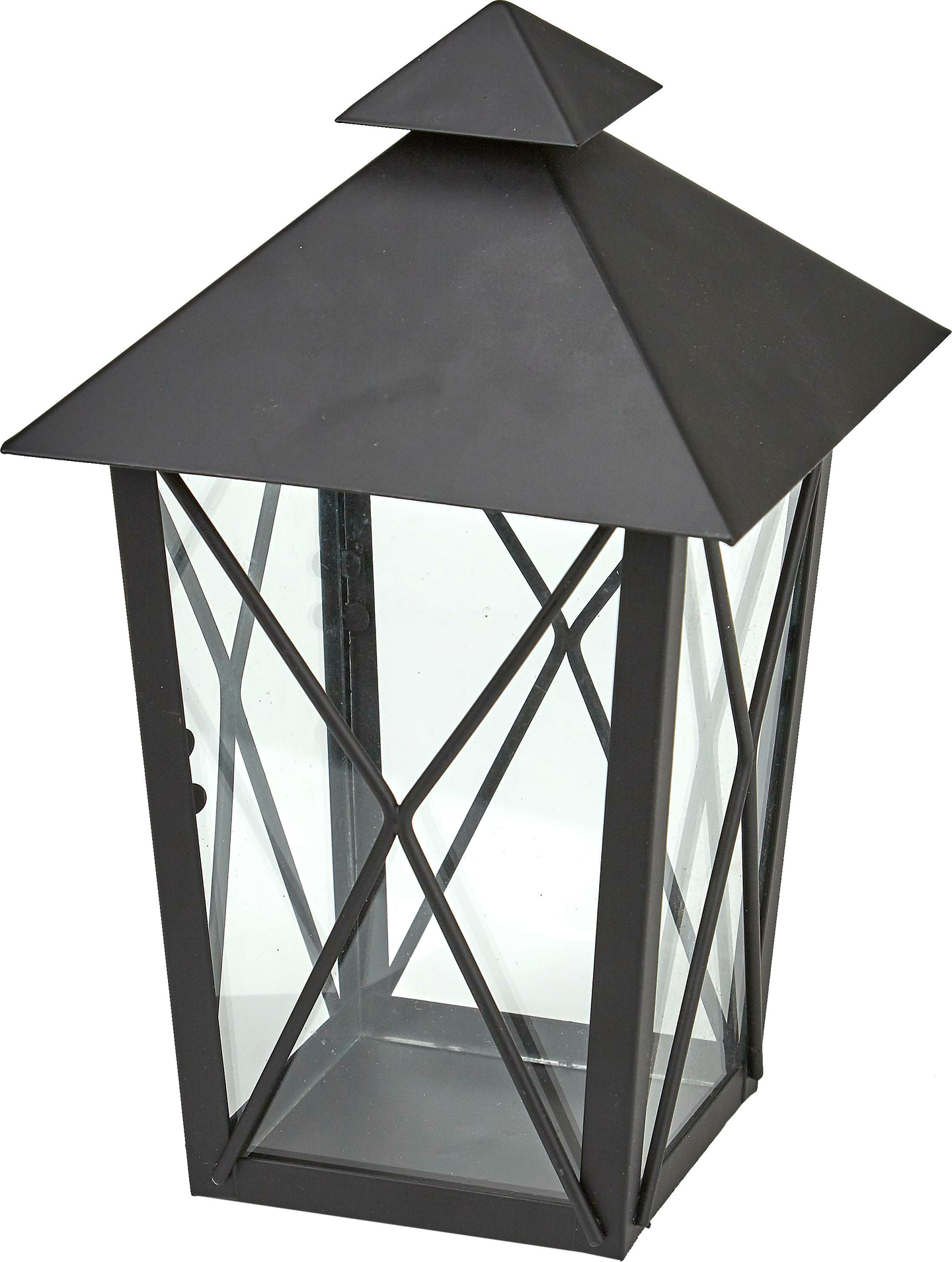 Musta metallinen hautalyhty, jossa koottava varsi. Kokonaiskorkeus koottuna 95,5cm.