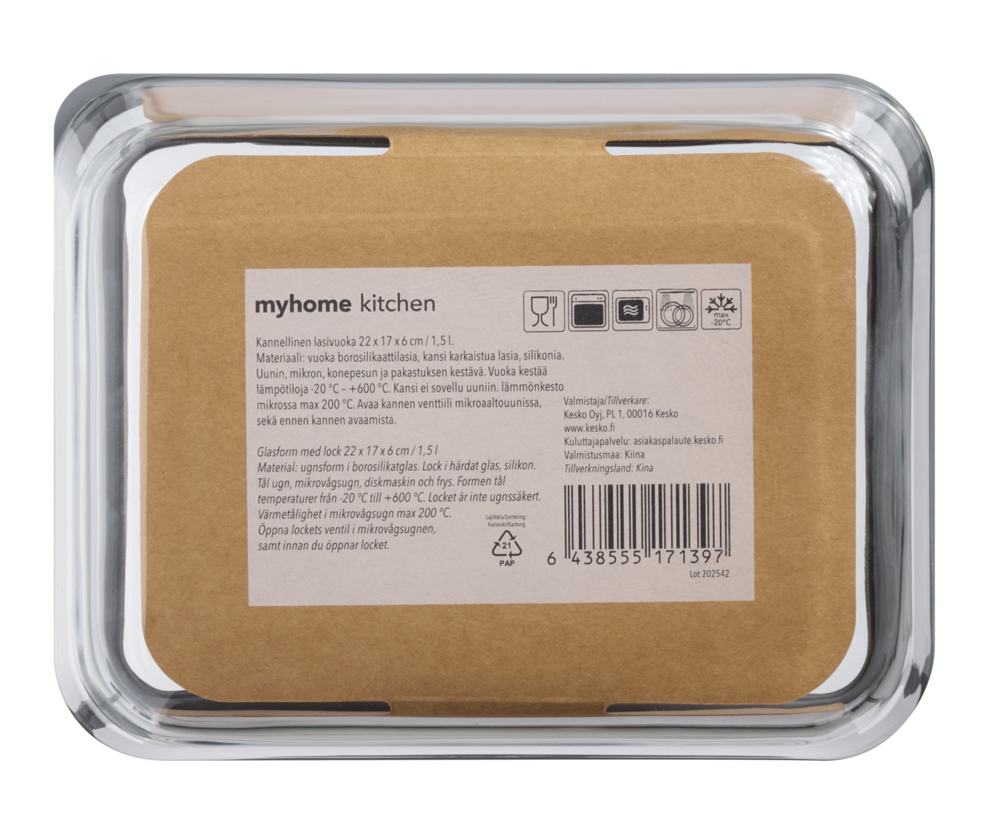 Monikäyttöinen myhome lasivuoka tuo keittiöösi toimivuutta. Vuoka on suunniteltu kestämään ja helpottamaan ruoanlaittoa. Tämä 1,5 L vuoka on valmistettu borosilikaattilasista, joka kestää äärimmäisiä -20 °C – +600 °C lämpötiloja. Täydellinen uuniin, pakastimeen, mikroaaltouuniin ja astianpesukoneeseen. Huom. kansi ei sovellu uuniin.
