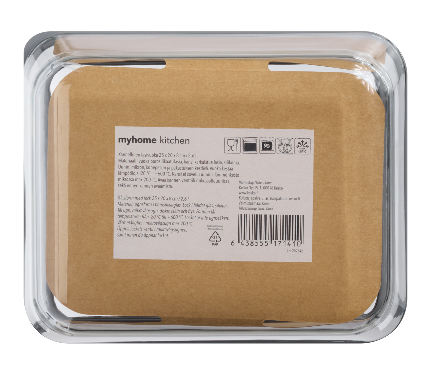Monikäyttöinen myhome lasivuoka tuo keittiöösi tyylikkyyttä ja toimivuutta. Vuoka on suunniteltu kestämään ja helpottamaan ruoanlaittoa. Tämä 2,5 litran vuoka on valmistettu borosilikaattilasista, joka kestää äärimmäisiä lämpötiloja -20 °C – +600 °C. Vuoka on täydellinen uuniin, pakastimeen, mikroaaltouuniin ja astianpesukoneeseen.Huom.Kansi ei sovellu uuniin.