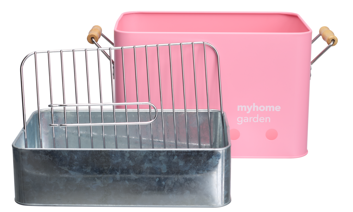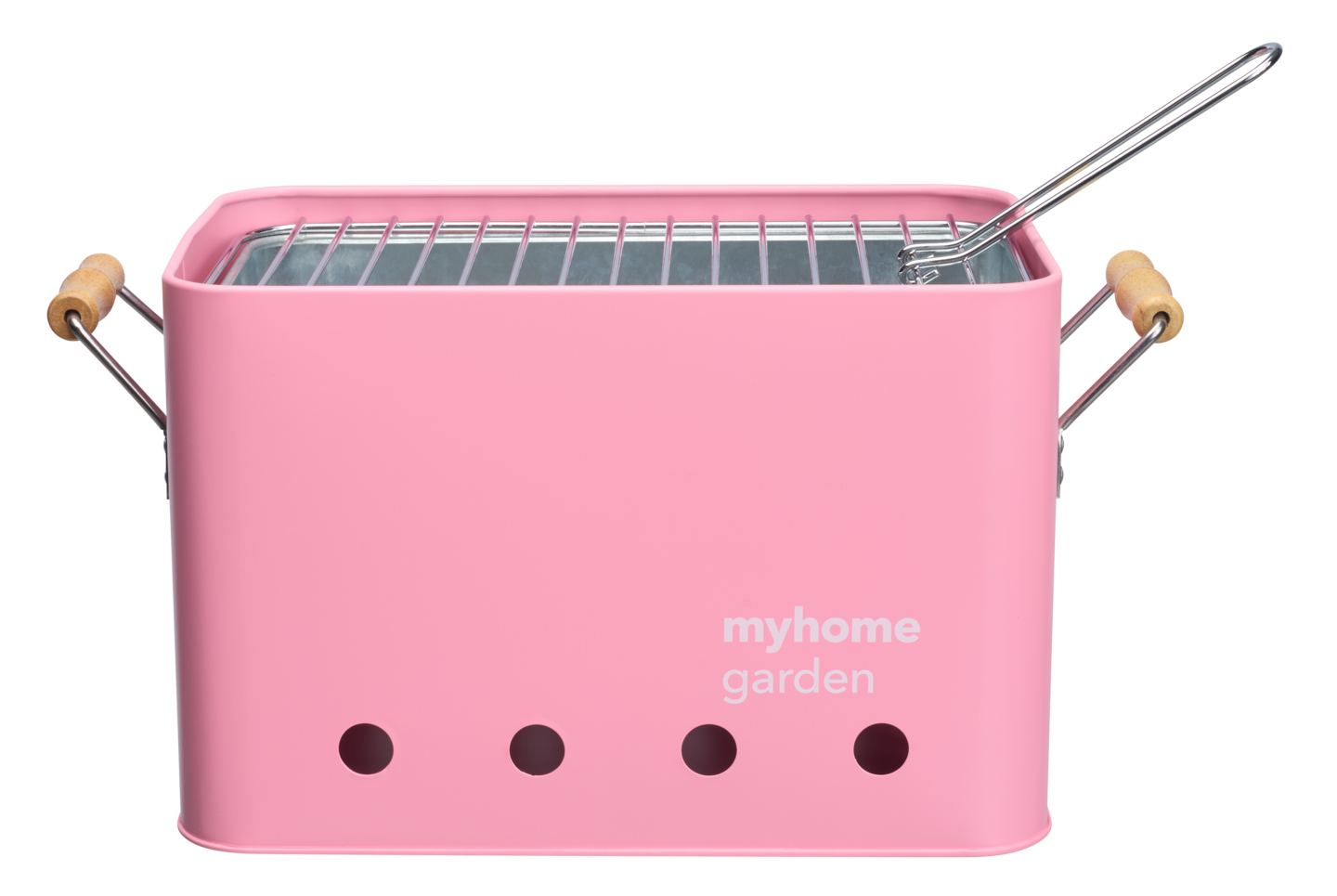 myhome kannettava pieni hiiligrilli.Grillin mitat 42 x 21 x 21 cm.Grillausalan koko 33,5 x 21,5 cm.Materiaali: galvanoitu metallilevy, kromattu metalli.