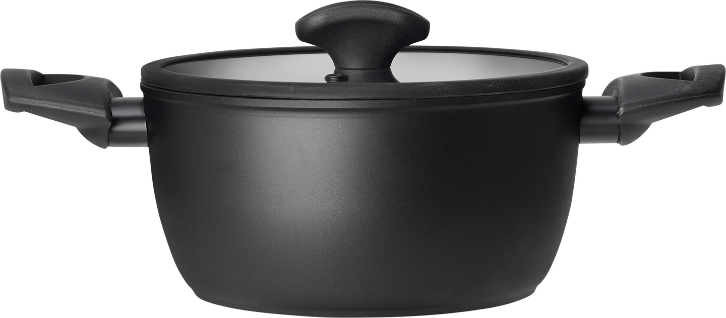 Kattila kannella 2,8 l Materiaali: Alumiini. Tarttumaton Toptek[1]sisäpinnoite. Kansi lasia, bakeliittia ja silikonia. Käyttö- ja hoito-ohjeet: Pese ja kuivaa sekä voitele sisäpinnoite ruokaöljyllä ennen ensimmäistä käyttökertaa. Laita astiaan tilkka vettä tai nokare rasvaa, kun alat paistaa. Astia on paistovalmis kun vesi on haihtunut tai rasva on ruskistunut kauniisti. Vähennä lämpöä heti, kun ruoka alkaa ruskistua tai kiehua. Käytä puisia tai muovisia työvälineitä, metalli saattaa naarmuttaa sisäpinnoitetta. Pese astia aina käytön jälkeen. Tuote kestää konepesun, mutta suosittelemme käsinpesua astian käyttöiän pidentämiseksi. Kevyt rasvaus ruokaöljyllä pesun jälkeen lisää käyttöikää. Astiassa ei saa säilyttää ruokaa. Tarkista induktiolieden käyttöohjeista oikea keitto- tai paistoastian koko. Pinnoite ei sisällä PFOA-yhdisteitä. Varoitus! Älä ylikuumenna tyhjää astiaa, Uunissa lämpötila max 150° C.