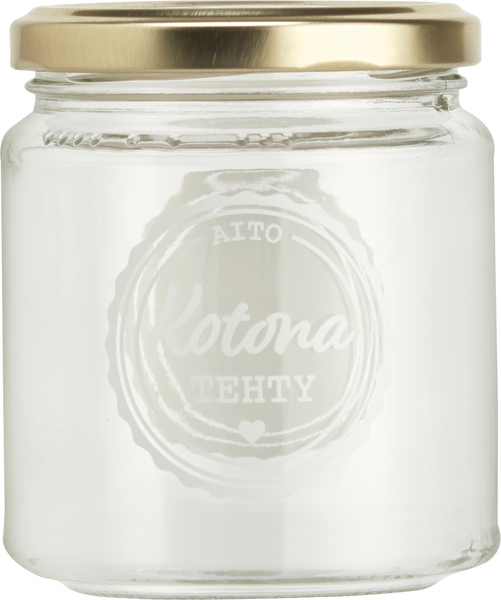 myhome-sarjasta löydät käytännölliset astiat niin arkeen kuin juhlaan. Ruuan säilytys on tärkeä osa ruoanvalmistusta ja ruokaturvallisuutta. myhome kierrekantinen säilöntätölkki 0,2 l "Kotona tehty". Soveltuu itsetehdylle sinapille, hilloille, marmeladeille, hyytelöille. Kaunis myös irtomausteiden ja kuivattujen yrittien säilytyksessä. Konepesunkestävää lasia.