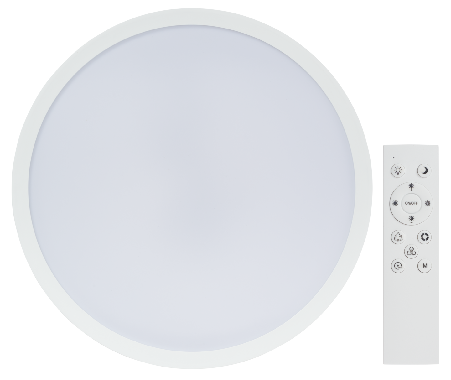 Valkoinen LED-plafondi sisäkäyttöön. Tuote sisältää valonlähteen, jonka energialuokka on F. Valonlähde ei ole vaihdettavissa. Kaukosäätimen toimintasäde on noin 5m. Kaukosäädin tarvitsee toimiakseen 2 x 1,5 AAA paristot. Paristot eivät sisälly pakkaukseen.