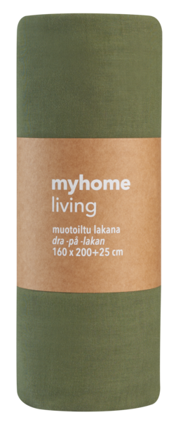 100 % puuvillaa. Väri metsä. Kuminauhat kulmissa pitävät lakanan hyvin paikoillaan. Patjan korkeus max. 25 cm. Lankatiheys 120. Pesu 60 asteessa.