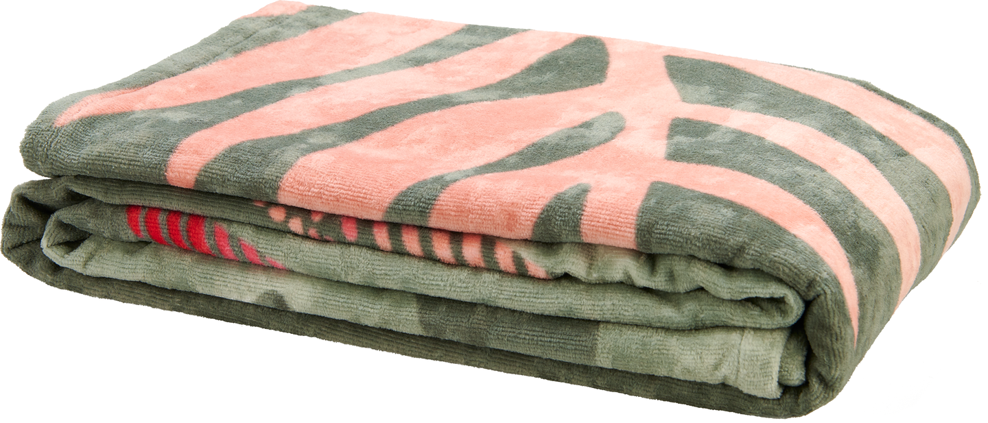 Pyyhkeen toinen puoli on velouria ja toinen froteeta. Salaperäinen kuvio toistuu vain pyyhkeen toisella puolella. Koko 90 x 180 cm.