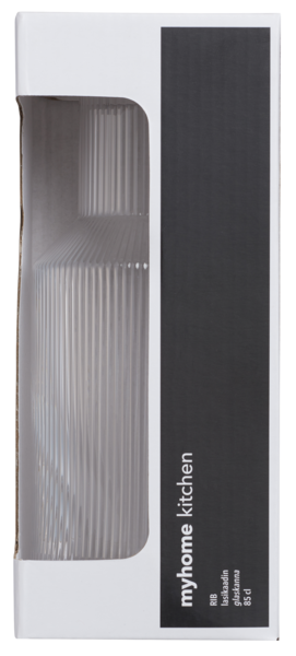 myhome-sarjasta löydät käytännölliset astiat niin arkeen kuin juhlaan. myhome Rib kaadin 850 ml on vekkikuvioitua kirkasta suupuhallettua lasia. Näyttävä vekkikuviolla uritettu kaatimen pinta sopii hyvin eleganttiin ja tyylikkääseen kattaukseen. Yhdistä ne saman sarjan kuohuviini-, viini-, coctail-, ja vesilasiin luodaksesi kattavan kokonaisuuden. Astianpesukoneen kestävä.Valmistettu suupuhalletusta lasista.