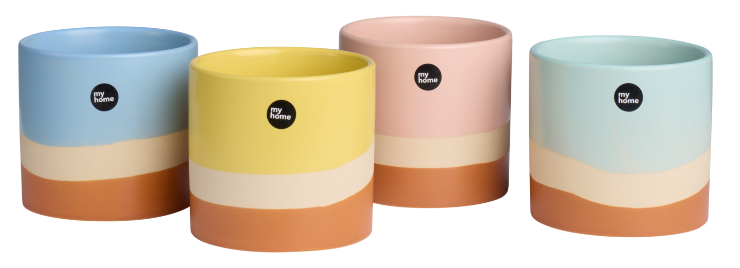 Kaunis monivärinen myhome Riemu ruukku neljässä eri väriyhdistelmässä.