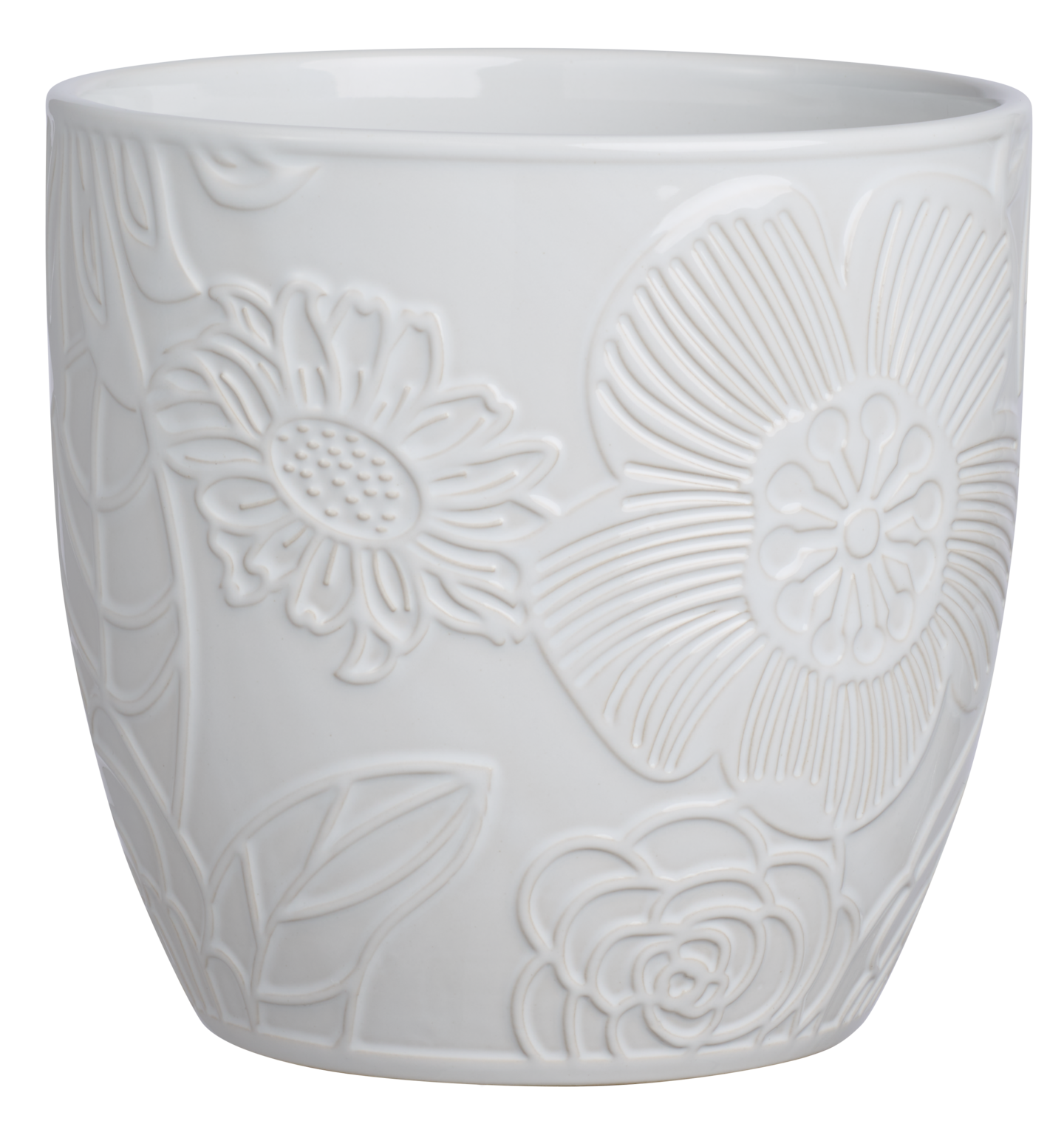 Kaunis pintakuvioitu keraaminen myhome Romanssi ruukku värissä valkoinen.