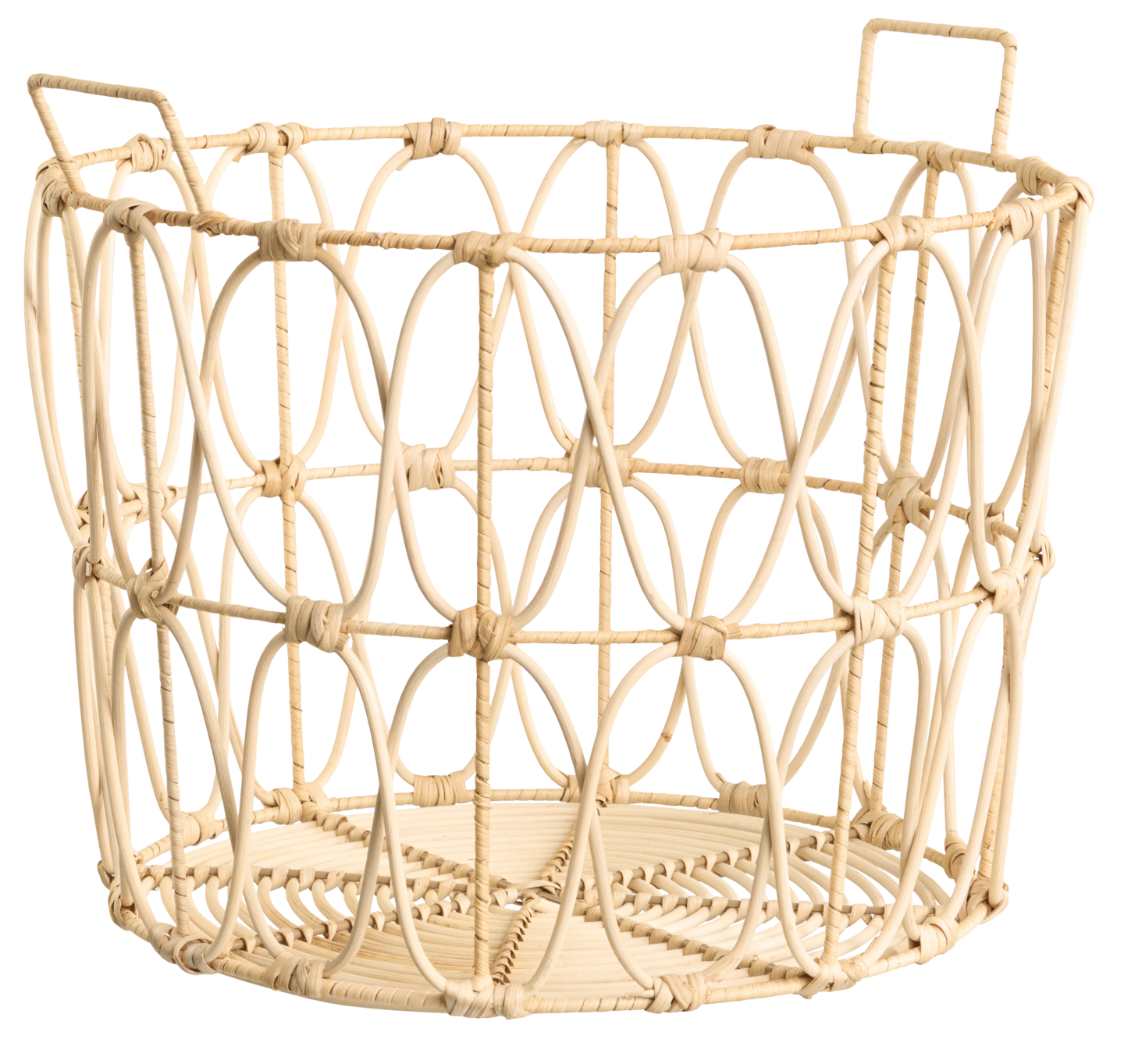 Vaalea rottinkikori on tyylikäs ja käytännöllinen sisustuselementti. Tukevassa korissa on kantokahvat, joilla koria voi siirrellä tarvittaessa. Koria on kolmessa eri koossa. Tämä on koreista suurin. Pyöreän korin halkaisija on 40 cm, korkeus korin reunaan 29 cm ja kahvojen yläreunaan 34 cm.