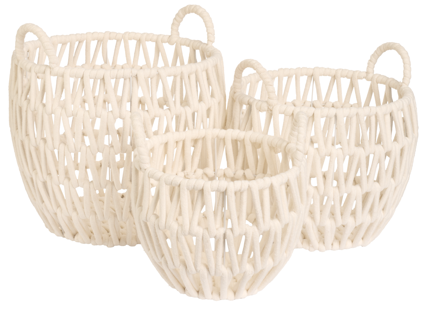 Puuvillanyöristä valmistettu kori on kaunis ja sopii moneen sisustukseen. Puuvillanyörit on solmittu metallirenkaisiin, jotka pitävät tukevan korin muodossa. Korissa on myös kätevät nostokahvat. Koria on kolmea eri kokoa. Pienimmän korin halkaisija on 25 cm ja korkeus 20 cm.