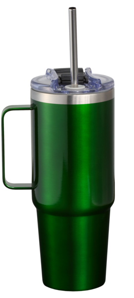 Trendikäs ja reilunkokoinen teräsmuki ISOON janoon salille, konttorille jne. Kapeamman pohjan ansiosta muki mahtuu myös auton juomatelineeseen. Pitää kylmän juoman kylmänä ja kuuman kuumana pitkään, mukin tilavuus on 0,85 L. Mukissa kumitiivistetty korkki kierteillä. Korkissa on lukittava juoma-aukko ja kumitiivisteinen reikä metallipillille, joka sisältyy pakkaukseen. Koko 90 x 235 mm.