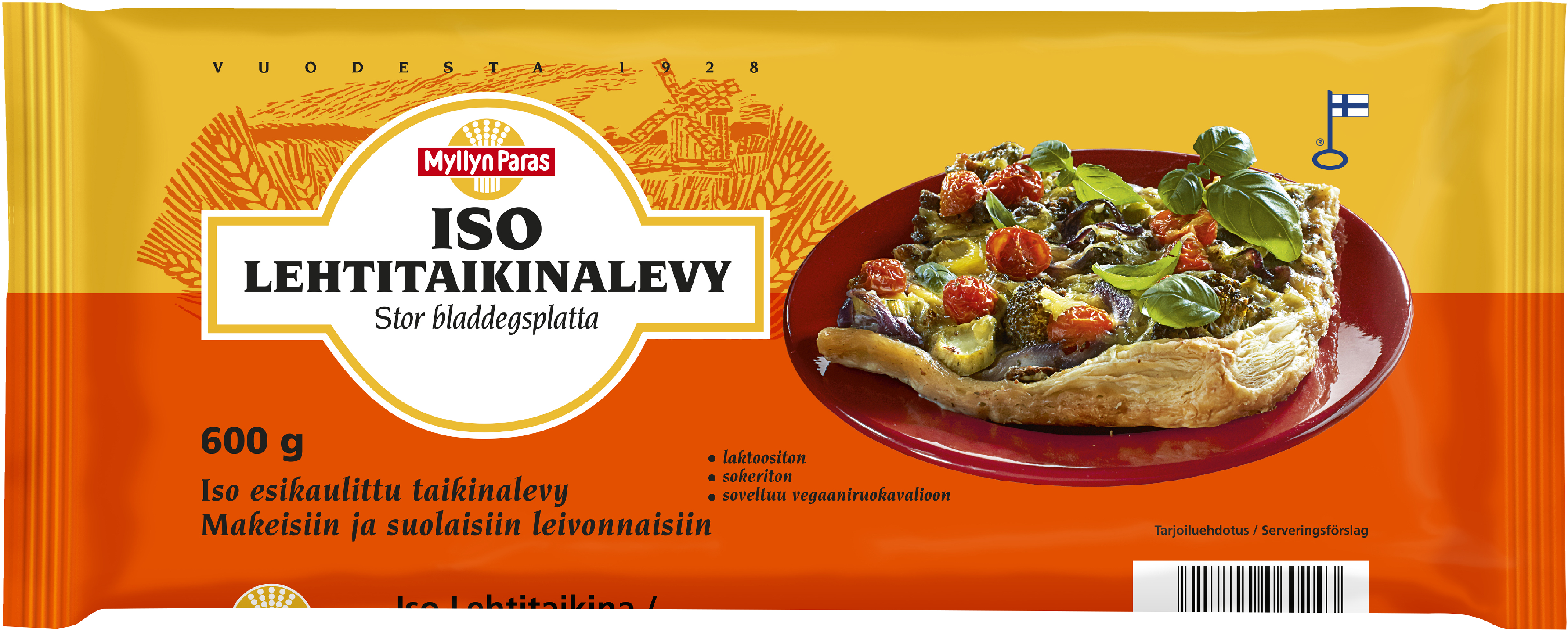 Iso Lehtitaikinalevy sopii suolaisiin tai makeisiin leivonnaisiin: piirakoihin, pasteijoihin, torttuihin tai muihin leivonnaisiin.