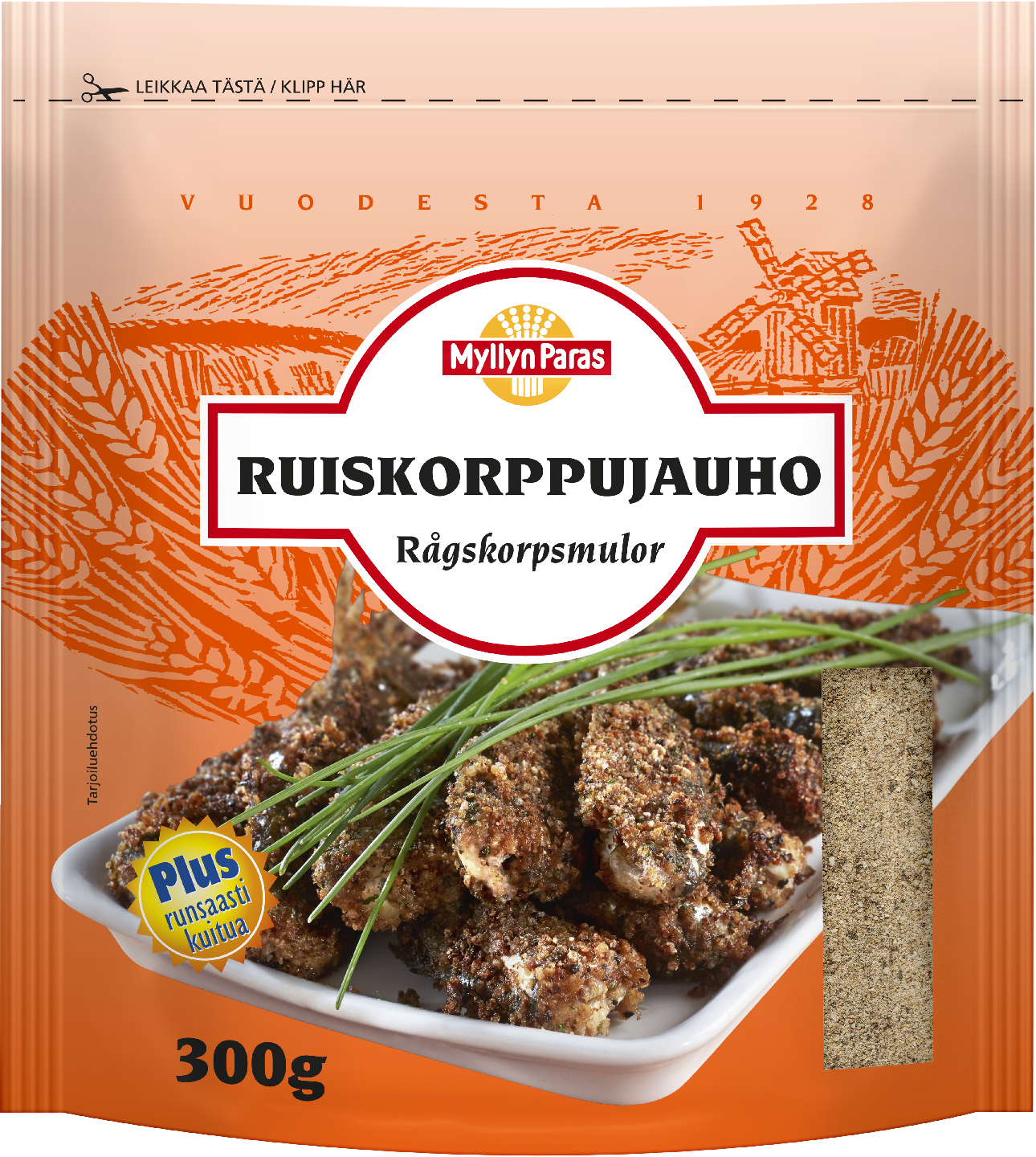 Myllyn Paras Ruiskorppujauho sopii mureketaikinoihin ja leivittämiseen, eritoten silakkapihveille ja on mainio laatikkoruokien ja kinkun kuorrutukseen. Vuokien leivityksessä ruiskorppujauho tuo rukiista aromia leipomuksiin. Kokeile myös viilin ja/tai marjojen päälle.