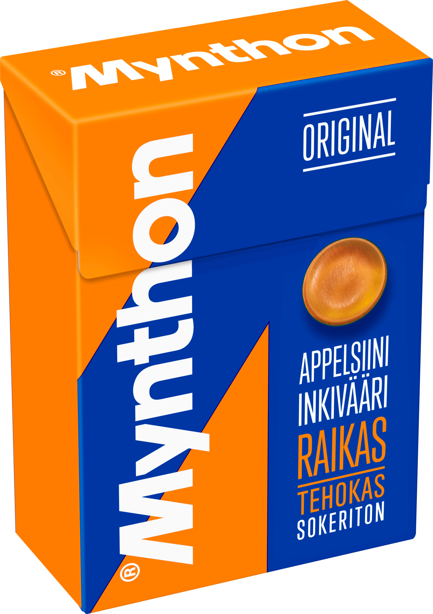 Sokerittomissa Mynthon Original Appelsiini-inkivääri pastilleissa yhdistyy suosikkimaku appelsiini ripaukseen inkiväärin tuomaa lämpöä. Tuote on vegaaninen, sokeriton ja täydennetty C-vitamiinilla. Pastilli raikastaa mynthonmaisen tehokkaasti. 5 pastillia sisältää C-vitamiinia 37 % päivittäisen saannin vertailuarvosta.