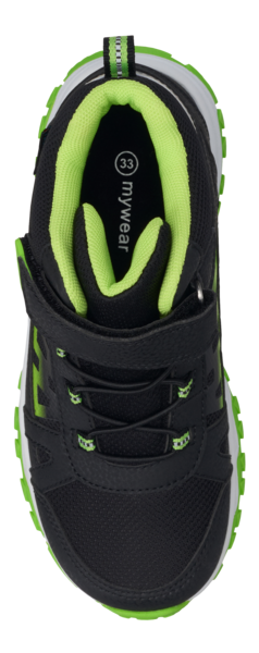 Lasten mywear Alpi ulkoilukengissä on vedenpitävä Tripletex-kalvo, joka pitää jalat kuivina. Päällinen on nahkajäljitelmän ja tekstiilin yhdistelmää. Ulkopohja on hyvin kuvioitua termoplastista kumia. Pehmeän tekstiilivuorin ansiosta nämä nilkkurit ovat mukavat välikausikengät. Myös irrotettava sisäpohjallinen on tekstiiliä. Tarran ja venykenauhojen ansiosta kengät on helppo säätää ja pukea.